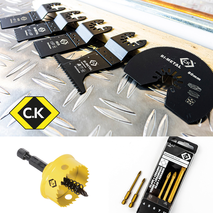 With that in mind, C.K has enhanced its range with innovative new products, including three new Multitool Blade Sets; a new 40mm HSS Cobalt Sheet Steel Hole Saw; and a Glass and Ceramic Drill Bit Set of 5, all designed to consistently achieve the best results.