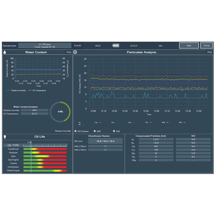 Oil life indicators and Water content sensors complete the multi-analytic package.