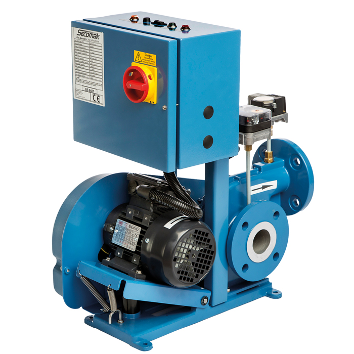 Comprising a purpose-built centrifugal fan powered by an electric motor, each gas booster works to provide a pressure lift to the gas supply where the desired operational pressure cannot be achieved by the installation or gas supply alone. This allows sufficient gas pressure to operate burners, boilers and CHP’s to operate efficiently and effectively.