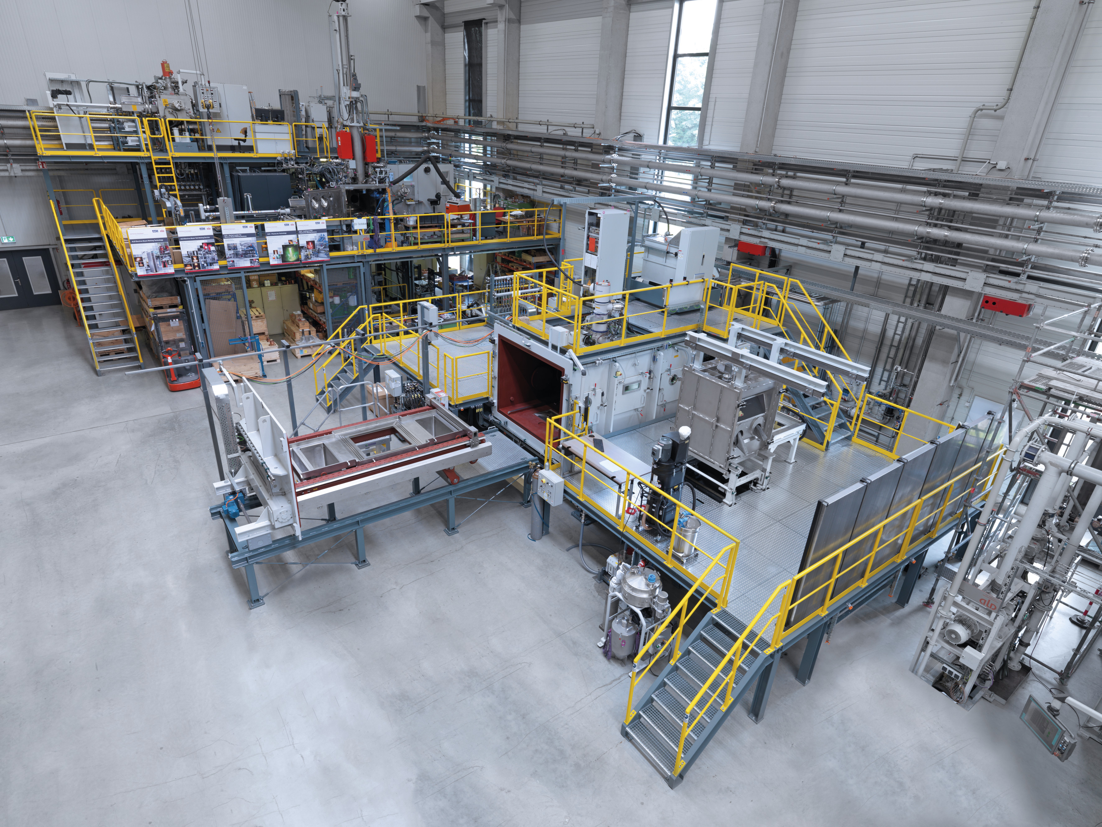 The EBuild® 850 is built around a powerful electron beam source, a movable build chamber, a process chamber equipped with a state-of-the-art powder deposition system, and a separate extraction unit for powder preparation and component removal. To enhance production capacity, a second build chamber can be integrated: while the melting and cooling process occurs in one chamber, the other can be used for component removal and preparation of new build jobs. “In order to deliberately overcome the limitations of component size, we expanded the chamber design significantly – without compromising process stability,” explains Dr. Klassen. The high-precision withdrawal unit positions the powder bed, which can weigh up to 15 tons, with a repeatability of approximately 0.01 mm across the entire build height of 1000 mm. The material supply and powder deposition are managed by a specially developed system designed to reliably process even poorly flowing powders. To prevent unwanted temperature effects on the material, the system features an efficient water-cooling system. The development of the EBuild® 850 greatly benefited from ALD Group’s technological expertise in vacuum technology, high-temperature processes, and the precise movement of large masses. As the powder is deposited layer by layer by the powder application system, the electron beam precisely follows the predefined contour, fusing the material with high accuracy. To minimize heat loss and optimize energy usage, all chamber walls and thermally stressed components are equipped with heat shields. Like all movable components and sensors, the powder-handling valves are designed with enhanced thermal resilience, ensuring reliable operation over extended periods, even at elevated temperatures and under the influence of metal dust.