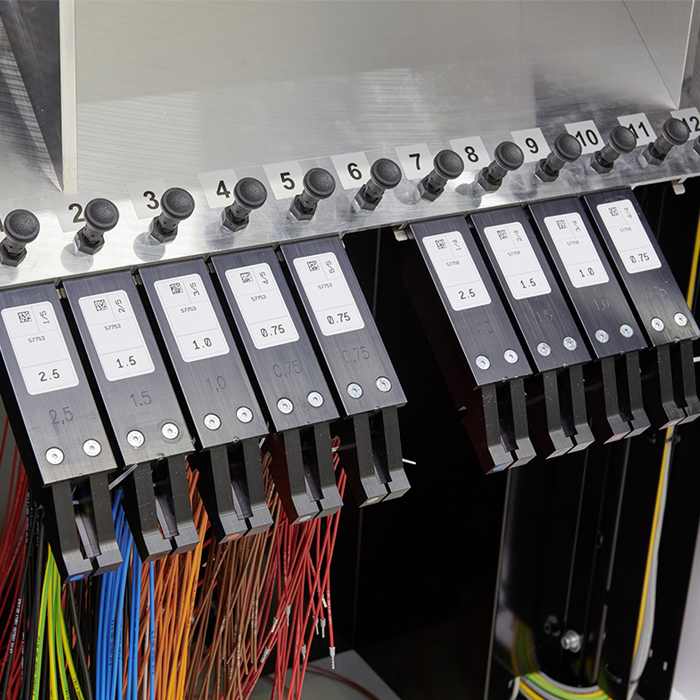Pre-assembled wires are stored and sorted sequentially by the machine using the EPLAN “smart wiring” tool. This allows users to locate the correct wire within the system quickly and easily, just by following the Smart Wire schedules.