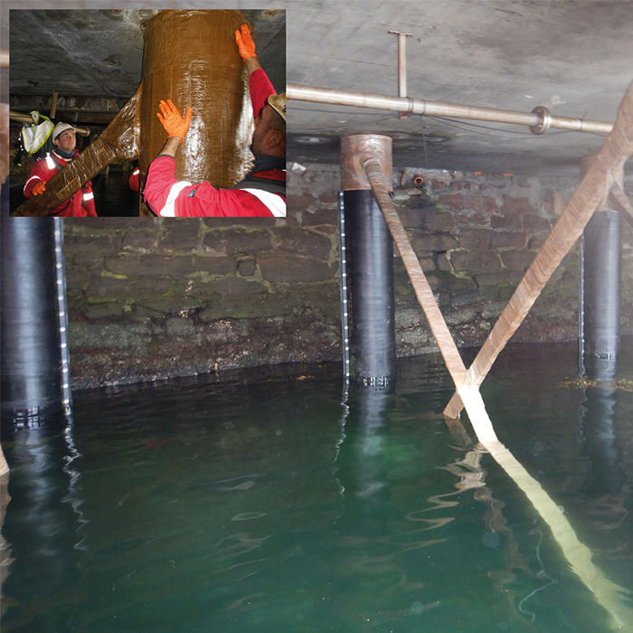 SeaShield 2000FD consists of Denso Paste S105™, Denso Marine Piling Tape™ and an outer HDPE jacket, which is hydraulically tensioned before being secured with stainless steel fixings.