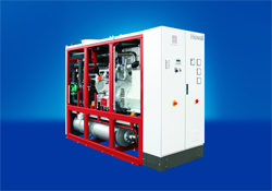 Hoval CHP engines are supplied with sound reduction housing and mounted on skids as standard. Or, if required they can be pre-installed in a pre-fabricated housing, on their own or complete with boilers and storage vessels.